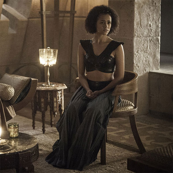 Наряды Элии Санд из жаркого Дорна — одни из самых эффектных. У нее супер открытые, струящиеся платья, но при этом подчеркивается агрессивность образа переплетающими ремнями с массой металлической отделки. Сандалии из коллекции «Юничел»