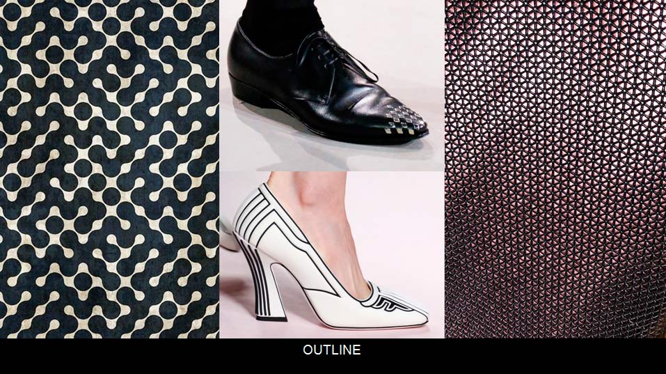 — В этом направлении в моде минимализм. Конструкции и подошвы очень интересных геометрических форм, сочетание белого и чёрного. В теме будут использоваться различные сетки, сочетание ярких контрастных цветов.