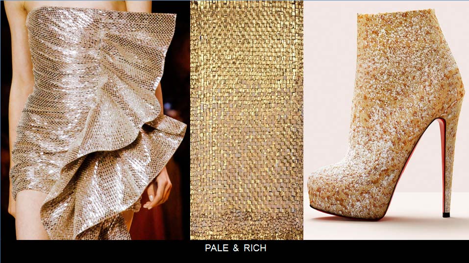 В этой стилистике очень много работают Dolce & Gabbana и Versace: обилие золота, серебра, дорогих материалов, имитирующих парчу, бархат. В моде — золото. Чем больше золота, тем лучше. Даже в обуви будет очень много золотых вставок в сочетании с белым.